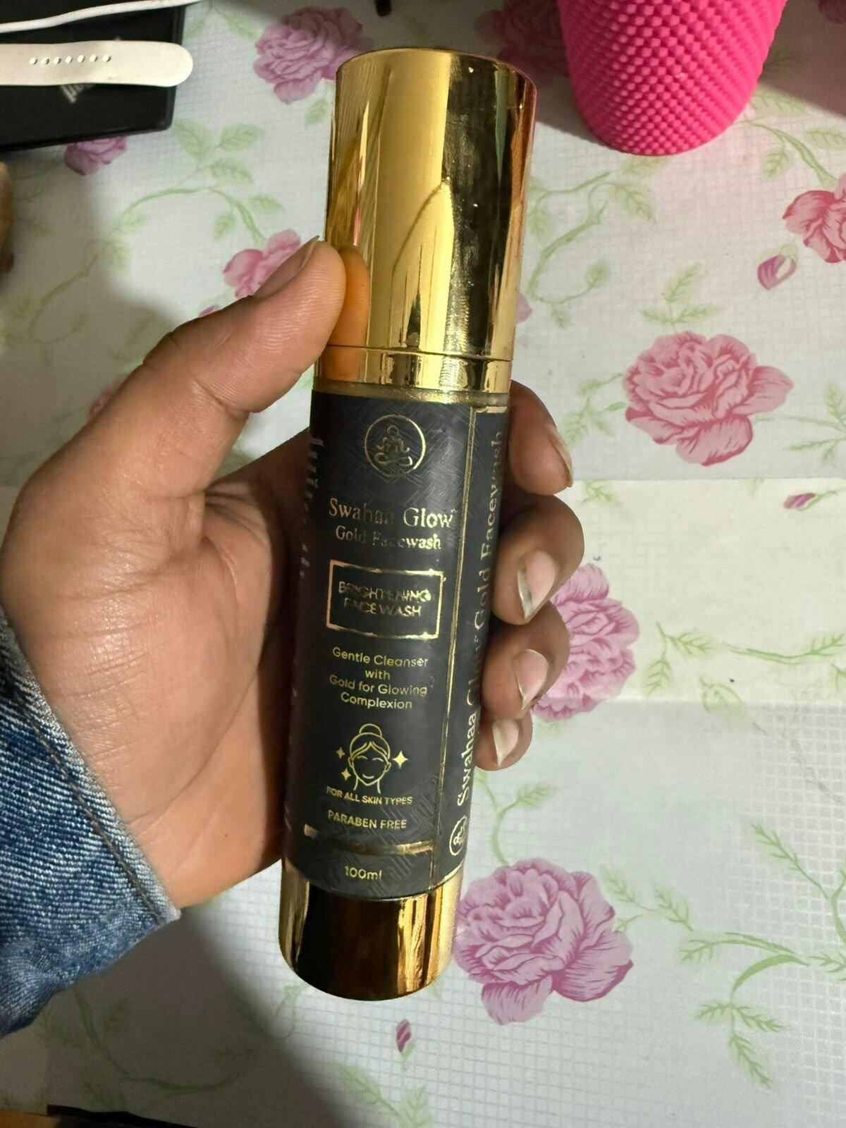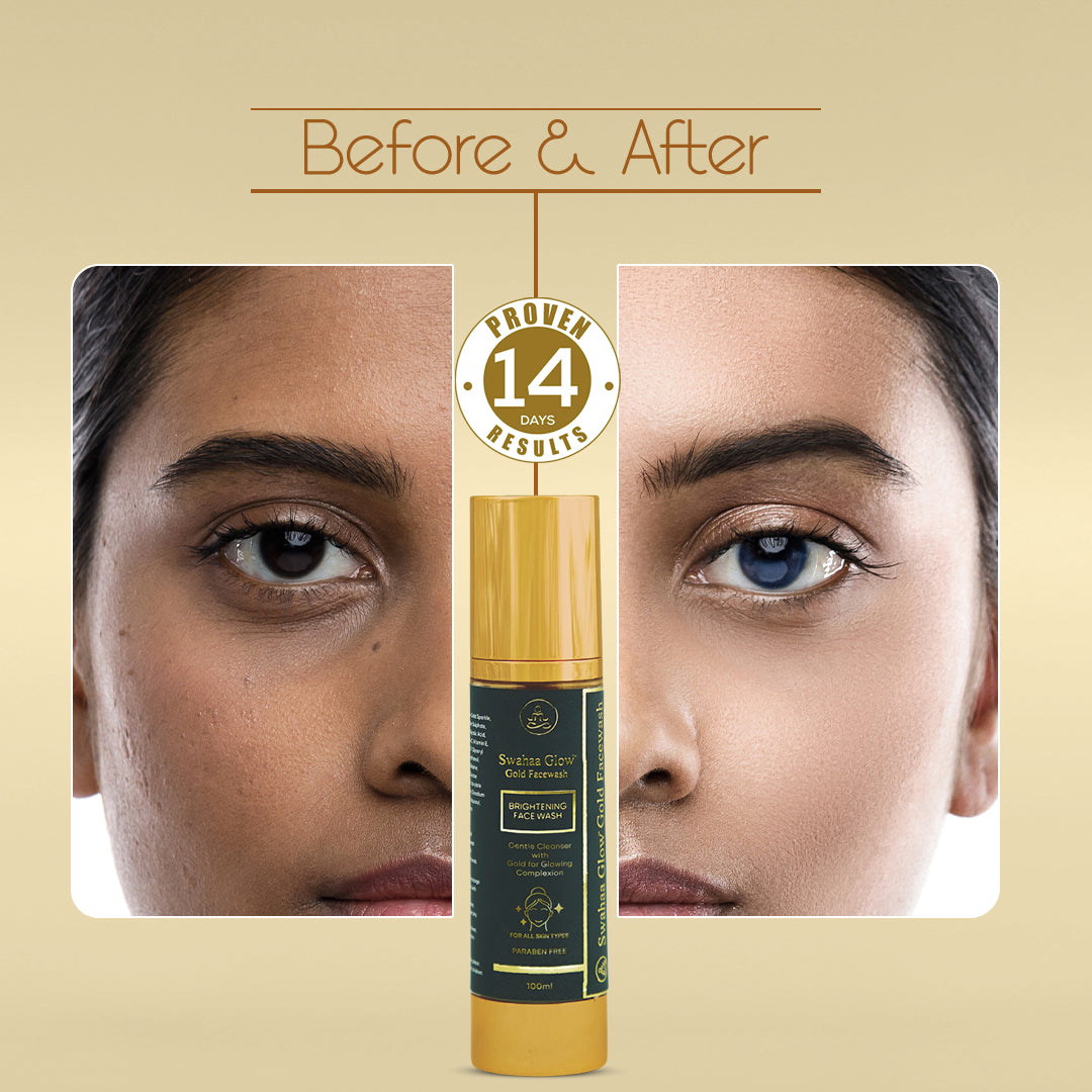 Experience the luxury of gold with Swahaa Gold Facewash – a gentle, dermatologist-tested cleanser enriched with 24K gold dust, aloe vera, and vitamin E that deeply cleanses, refreshes, and restores your natural glow.